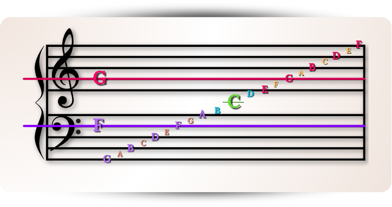 From Middle C, two other important guide notes are Treble G and Bass F.