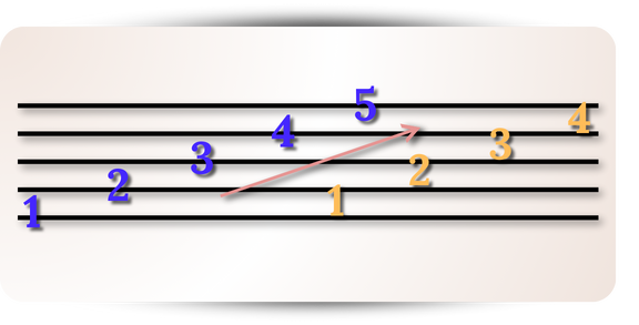 The idea is straightforward: the musical staff alternates between lines and spaces, and the notes follow a skipping sequence. For example: